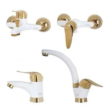 ست چهار تیکه شیرآلات تبسم مدل آریا سفید طلایی