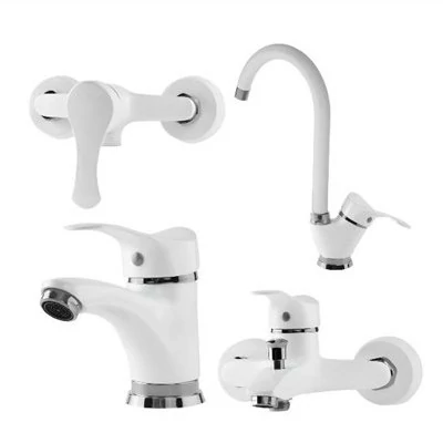 ست چهار تیکه شیرآلات تبسم مدل آتریس سفید کروم