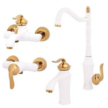 ست چهار تیکه شیرآلات تبسم مدل آرچر سفید طلایی
