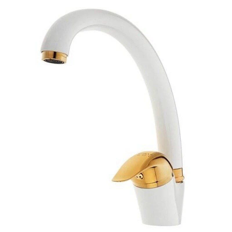 شیر سینک اردکی سفید دسته طلایی