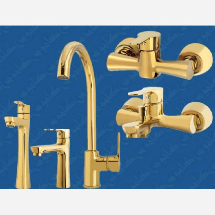 ست چهار تیکه شیرآلات مدل آراس رنگ طلایی