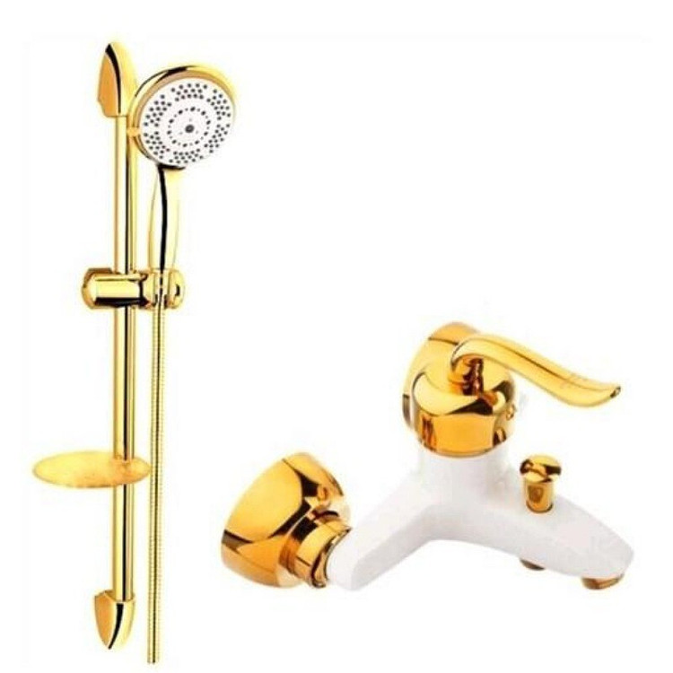 ست دو تیکه شیرآلات سفید طلا قاصدک با سر دوش یونیکا طلایی