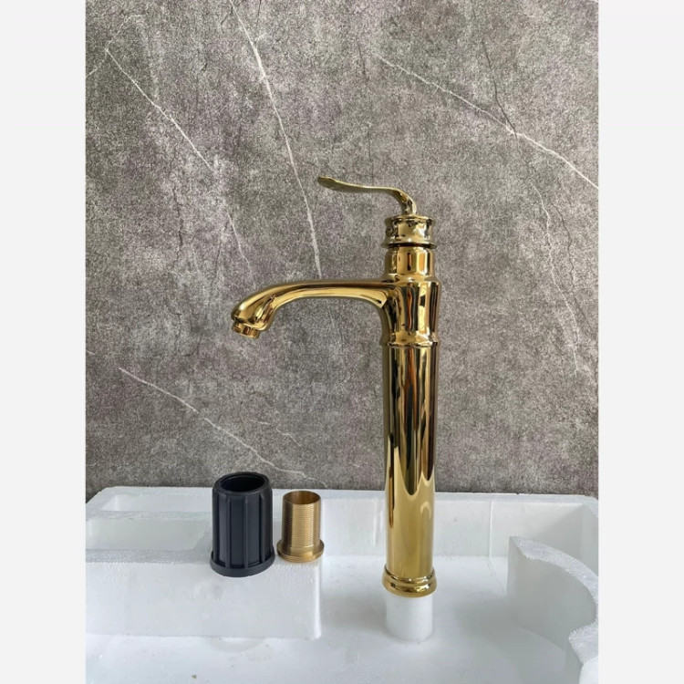 🔸 شیر روشویی پایهبلند رنگ طلایی براق