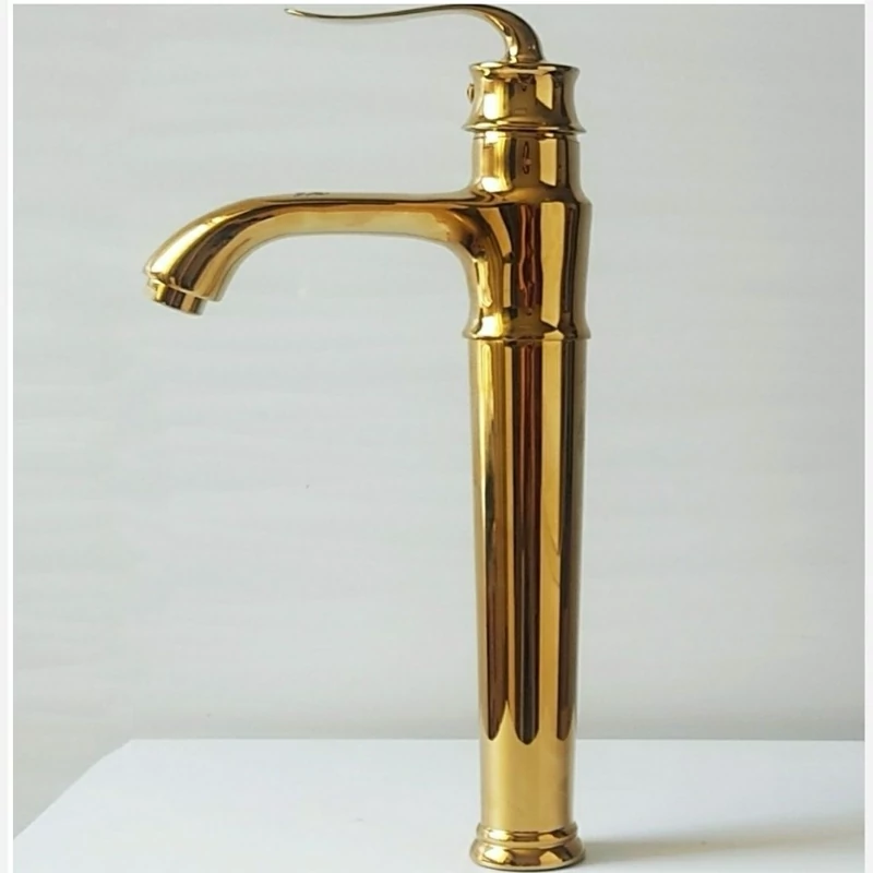 🔸 شیر روشویی پایهبلند رنگ طلایی براق