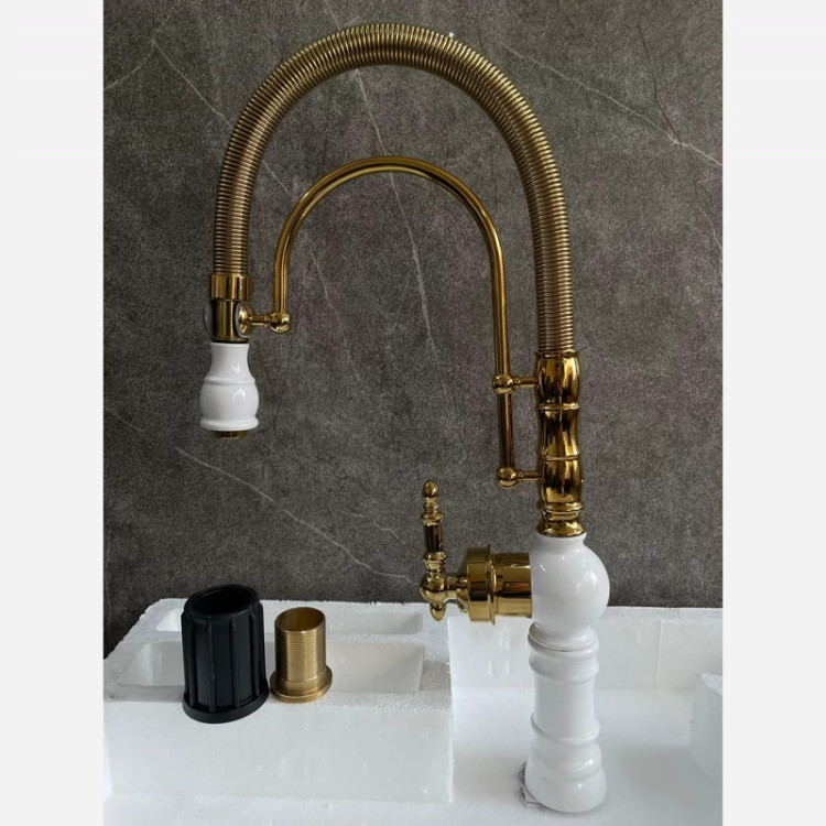🤍✨ شیر سینک فنری سزار سفید طلا – تکمنظوره ✨🤍