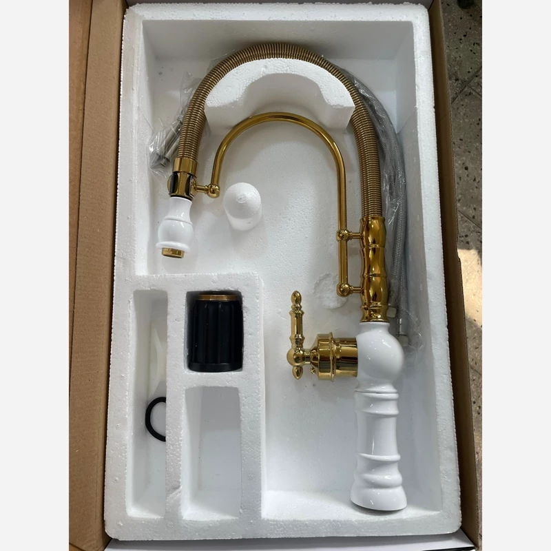 🤍✨ شیر سینک فنری سزار سفید طلا – تکمنظوره ✨🤍