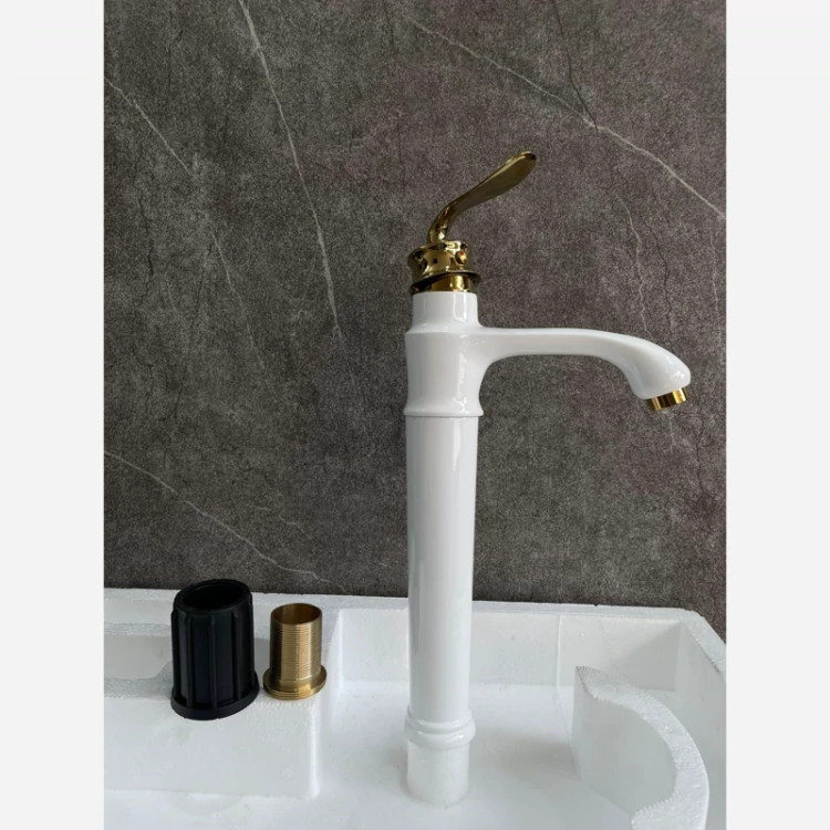 ✨ شیر روشویی پایهبلند مدل هلن سفید طلایی