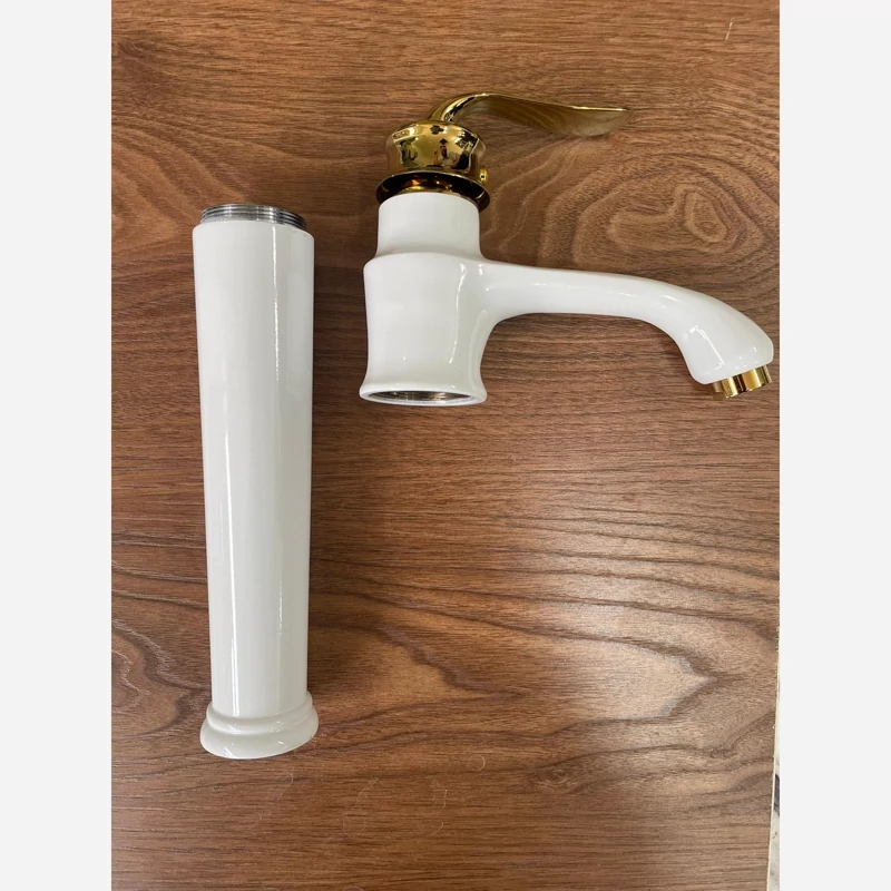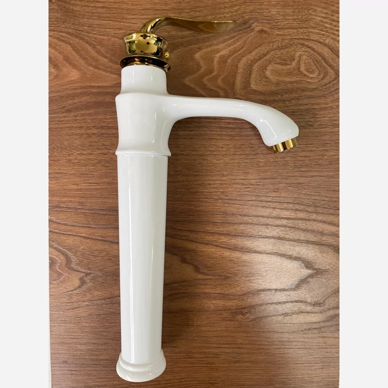 ✨ شیر روشویی پایهبلند مدل هلن سفید طلایی