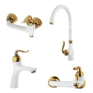 ست چهار تیکه شیرآلات تبسم مدل آرچر سفید طلایی